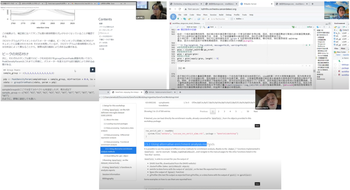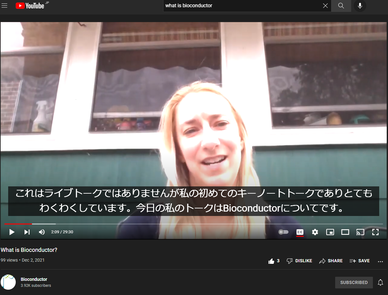 BioC Asia 2021 は BioC Asia 2020 の Mandarin 言語でのワークショップ開催から始まった多様性の実現をさらに推し進め、 「英語トークのライブ字幕の表示」「非ライブの非英語言語への翻訳字幕の表示」「より多様な言語でのワークショップ開催」 を新たに実現しました。 Bioconductor は多様性を尊重するコミュニティです。 このような多様性を実現する試みを歓迎します。