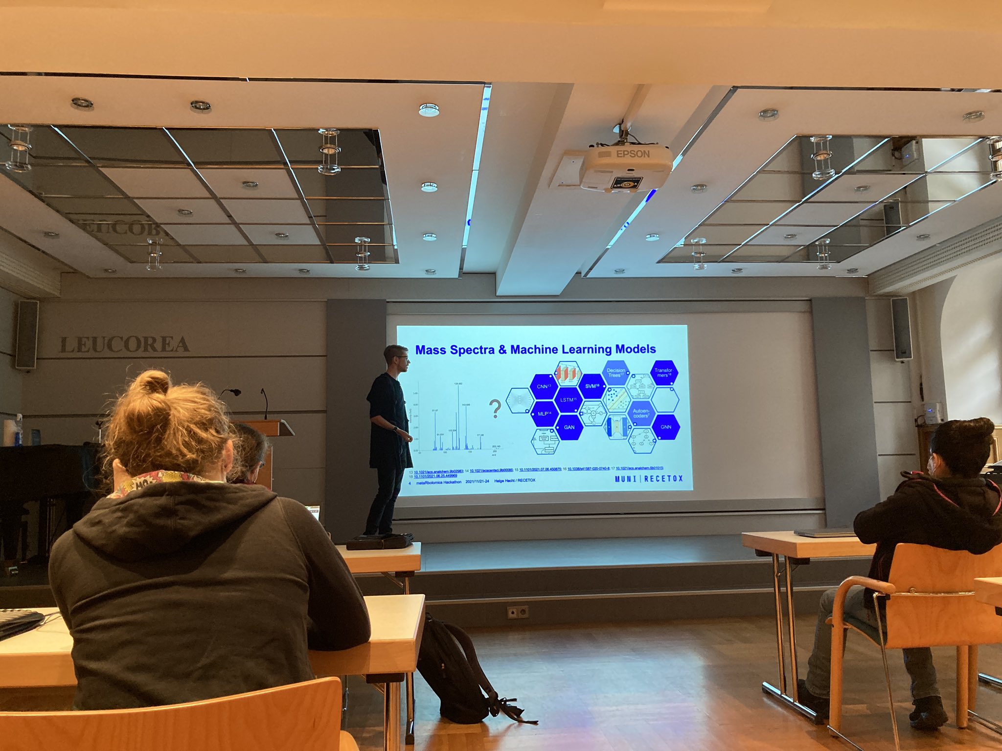 Participants were also allowed to give flash talks presenting either R packages or approaches and concepts such as Maria Llambrich presenting the amanida R package for meta-analysis of metabolomics studies or Helge Hecht giving an overview of machine learning approaches for annotation of small compounds in mass spectrometry data.