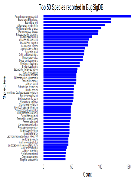 Additionally, I worked on a side project comparing Paul Jensen’s findings on the “Most Studied Species” and BugSigDB’s most recorded species.